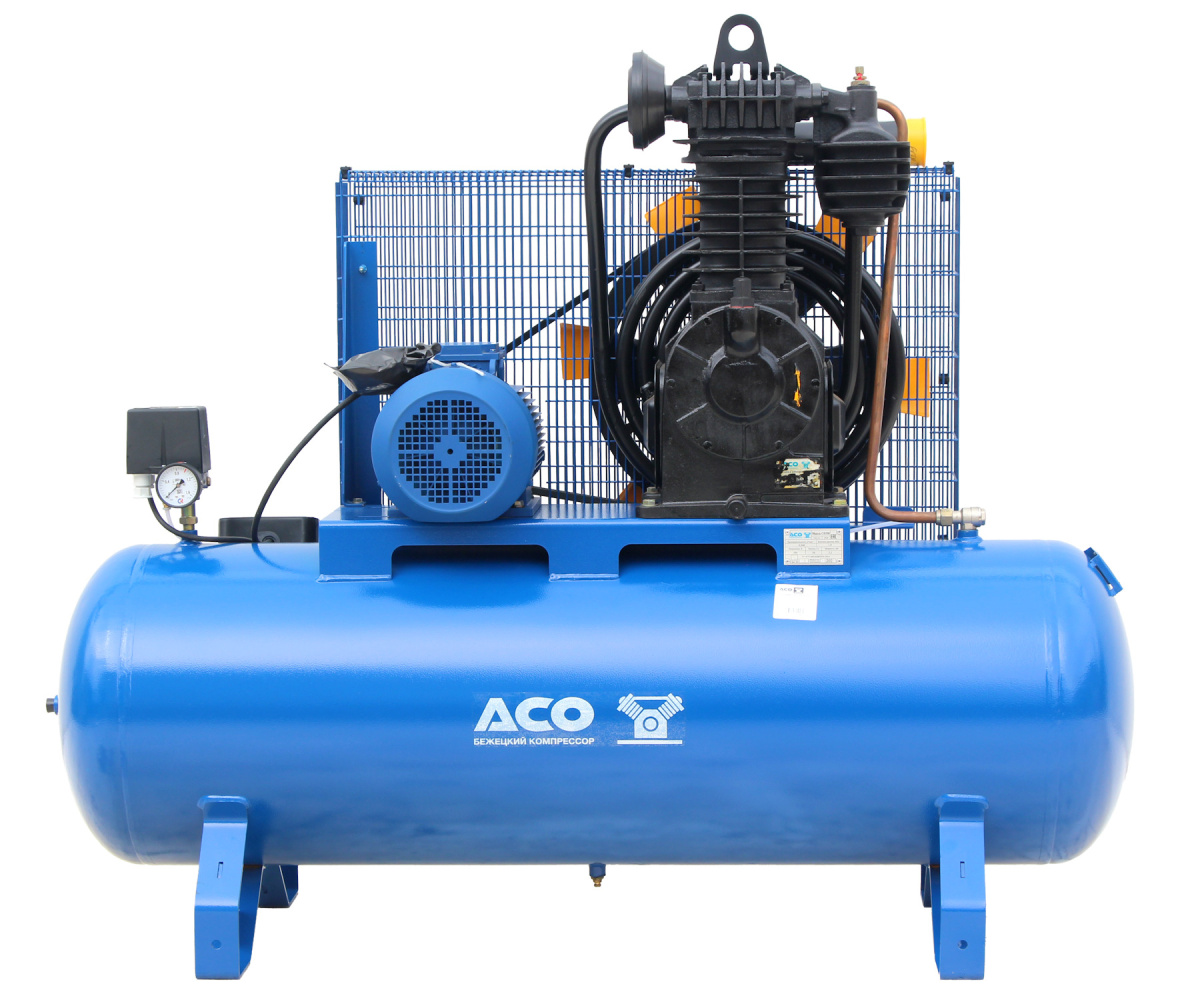 Передвижной поршневой компрессор С415М производства Бежецкого завода АСО. Данный компрессор оборудован ременным приводом от однофазного электродвигателя мощностью 5,5 кВт. В конструкции используется компрессорная головка С415М. Объем ресивера составляет 230 л. Номинальная производительность данного компрессора 940 л/мин, в то время как производительность по нагнетанию 720 л/мин. Компрессор обладает максимальным рабочим давление равным 8 атм. Габаритные размеры агрегата составляют 160 х 70 х 140 см, при массе 245 кг.