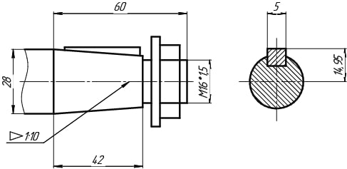 Вход — цилиндрический, выход — конический.