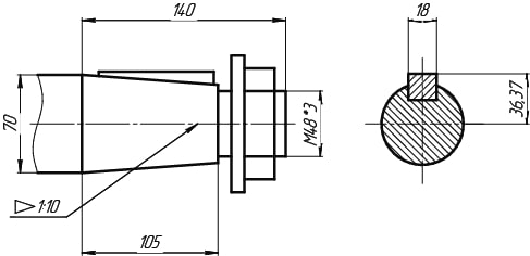 Вход — цилиндрический, выход — конический.