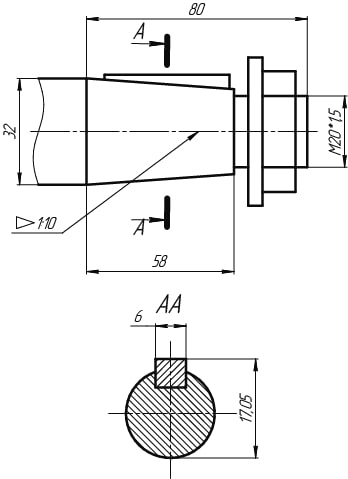 Квх/Цвых — конический вход / цилиндрический выход.