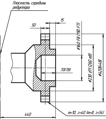 | Исполнение входного и выходного валов | Ц, М (Цилиндрический, c зубчатой Муфтой) |