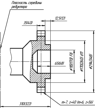 | Исполнение входного и выходного валов | Ц, М (Цилиндрический, c зубчатой Муфтой) |